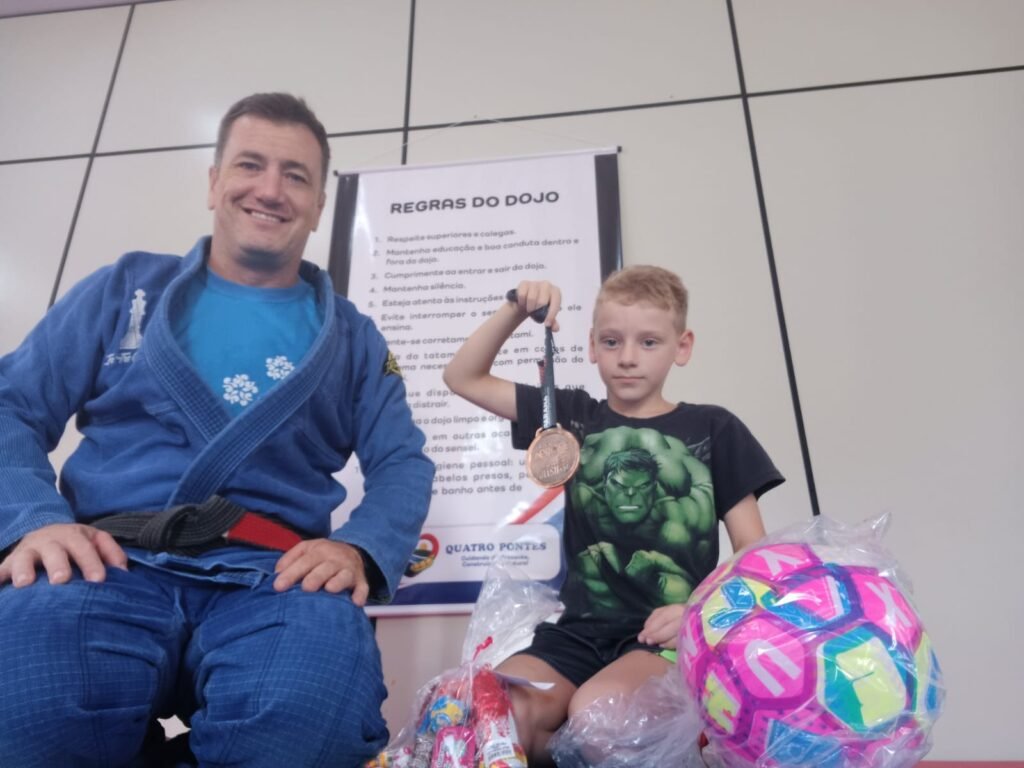 O Projeto Lutar e Vencer – Jiu-Jitsu, desenvolvido pela Prefeitura de Quatro Pontes por meio da Secretaria Municipal de Desenvolvimento Social, vivenciou nos dias 15 e 17 de dezembro um momento especial de encerramento das atividades antes do período de férias das crianças atendidas pelo projeto.