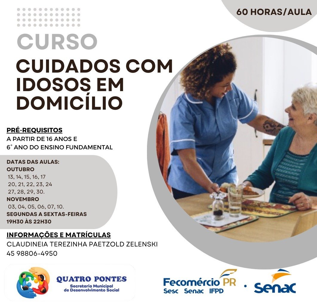 Quatro Pontes abre inscrições para Curso de Cuidador de Idosos em Domicílio