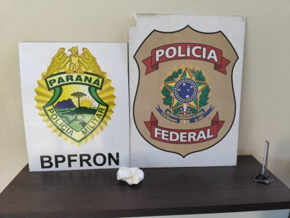 Nesta sexta-feira (27), durante ação integrada, Policiais Federais do NEPOM/PF e Policiais Militares do BPFRON/PMPR realizavam diligência no distrito de Dr. Oliveira Castro, no município de Guaíra/PR, quando visualizaram o condutor de uma motocicleta com um volume anormal na região da cintura. Diante da fundada suspeita, foi realizada a abordagem. No momento da ação, o indivíduo, declarou espontaneamente que portava cocaína, o que foi confirmado durante a busca pessoal. O suspeito informou que havia adquirido a droga com a finalidade de comercialização no município de Marechal Cândido Rondon, local onde reside.