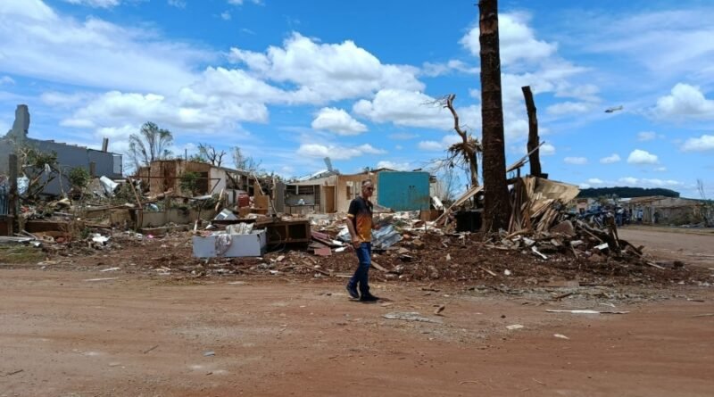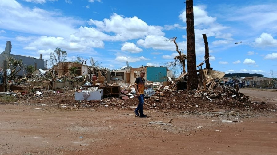 Ela conta que as ruas já foram limpas, mas nas calçadas é possível ver muitos objetos de casas, roupas que voaram durante o tornado. Eles citam que é uma grande parte da cidade que foi devastada. Casas e comércios ficaram em ruinas.