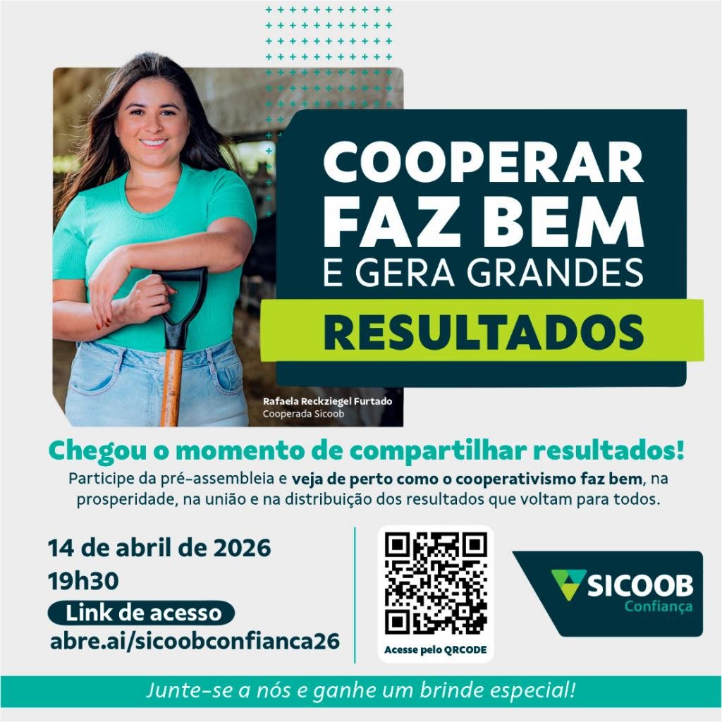 O Sicoob Confiança realiza, no próximo dia 14 de abril de 2026 (terça-feira), às 19h30, sua Pré-Assembleia Geral, que acontecerá em formato totalmente on-line. O encontro será transmitido ao vivo pelo link: https://www.youtube.com/live/NJab1B2_ZjQ