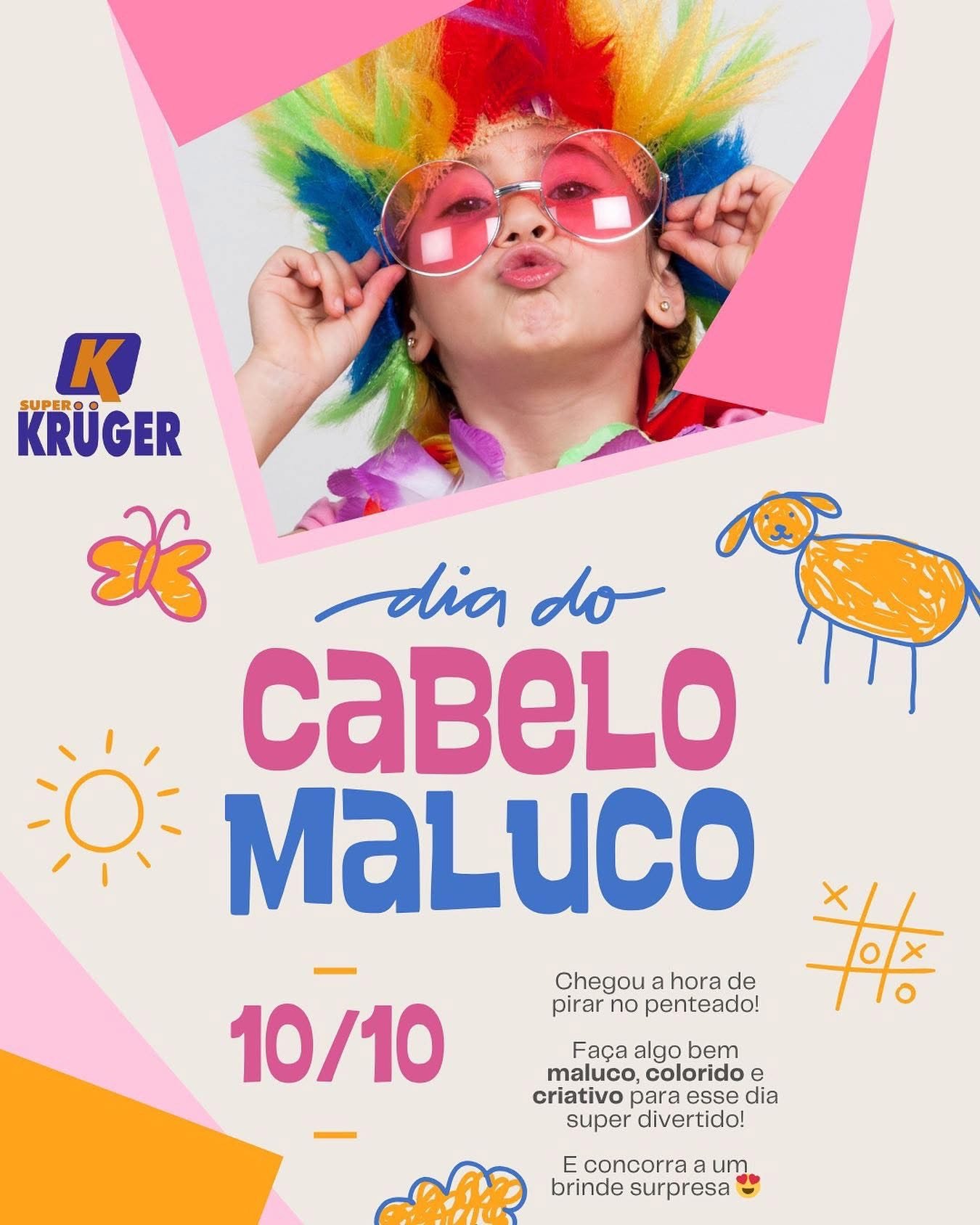 O fim de semana começa com muita alegria e criatividade no Super Krüger, que entra no clima da “Sexta do Cabelo Maluco!” A ação acontece nesta sexta-feira (10/10) e promete contagiar clientes e colaboradores com penteados pra lá de divertidos.
