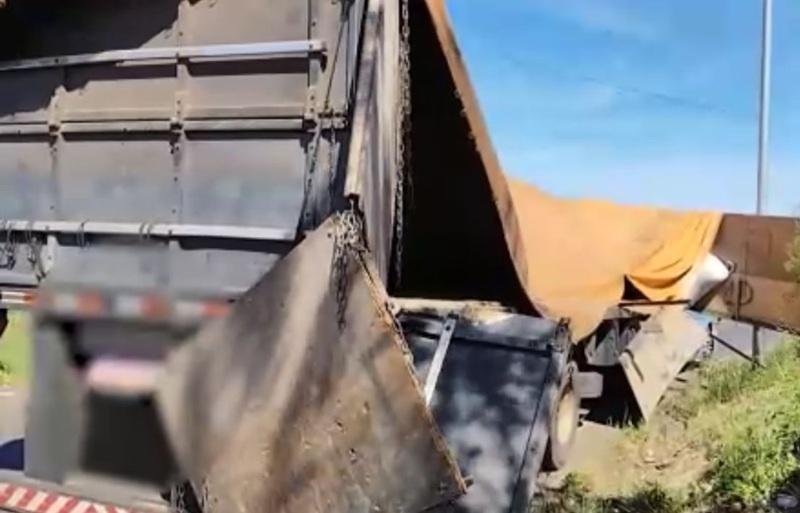 De acordo com as informações apuradas, o caminhão seguia de Santa Isabel com destino a Toledo, quando, na curva de acesso à rodovia 163, a tampa lateral da carroceria arrebentou e os sacos caíram do veículo.