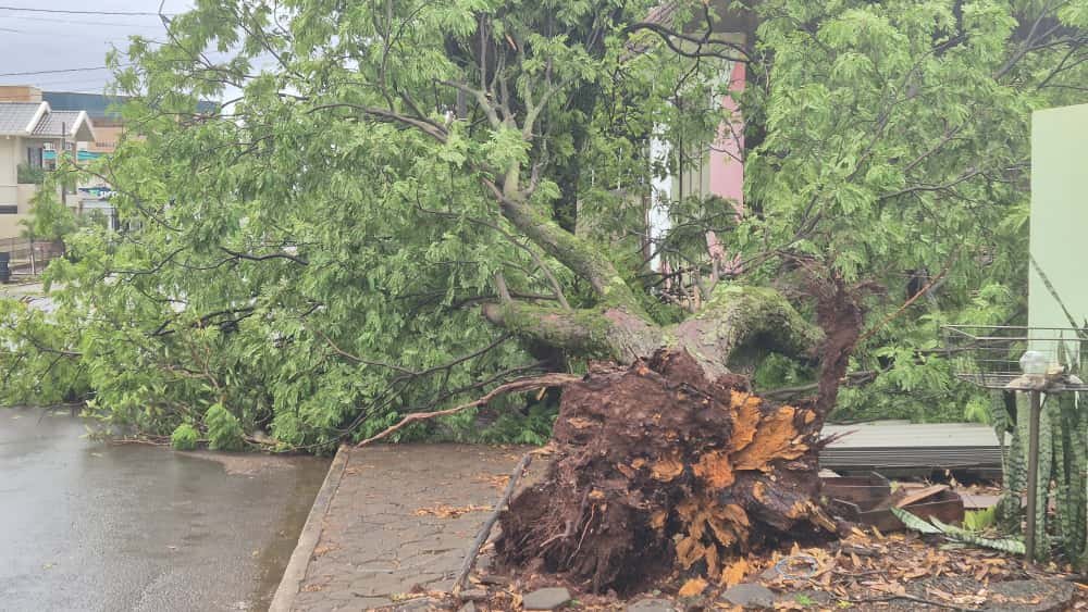 A madrugada desta segunda-feira (22) foi marcada por um forte temporal que atingiu o município, trazendo ventos de aproximadamente 60 km/h e acumulando cerca de 85 mm de chuva em poucas horas. O fenômeno deixou diversos estragos, com queda de outdoor e fachadas de comércios no centro da cidade, muitas árvores arrancadas e várias residências destelhadas em diferentes bairros. O temporal também deixou a cidade sem energia elétrica, com o fornecimento sendo restabelecido parcialmente por volta das 8h30 da manhã enquanto outros pontos no interior continuam sem energia. Apesar dos prejuízos materiais, não houve registro de feridos.