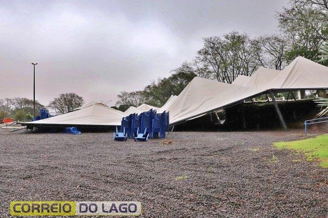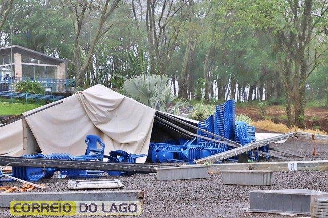 Temporal derruba estrutura da Semana da Padroeira em Itaipulândia