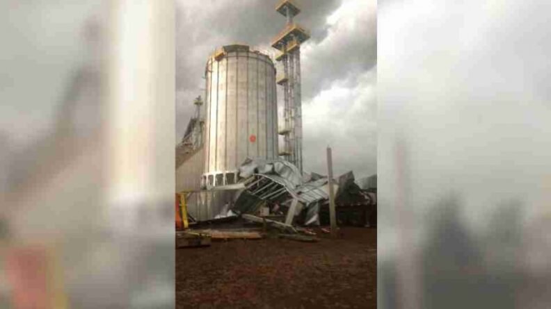 O silo ainda estava em fase de construção quando foi atingido pela ventania. Parte da estrutura não suportou a força do vento e acabou sendo derrubada.