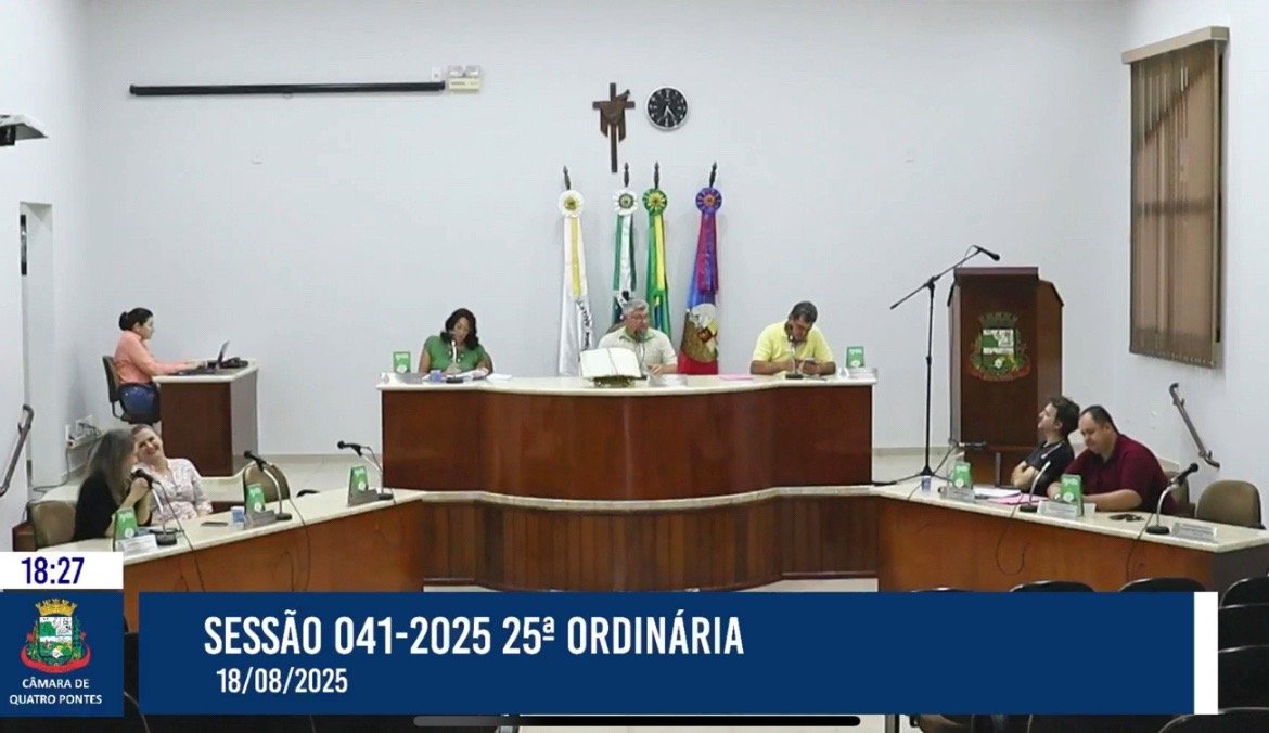 Na noite de segunda-feira, 18 de agosto de 2025, foi realizada a 25ª Sessão Ordinária da Câmara de Vereadores de Quatro Pontes. A sessão teve a presidência conduzida pelo vice-presidente Clóvis Kliemann, que substituiu o presidente Jean Steltter, o Kinho, ausente devido ao cumprimento de agenda na Capital do Estado.