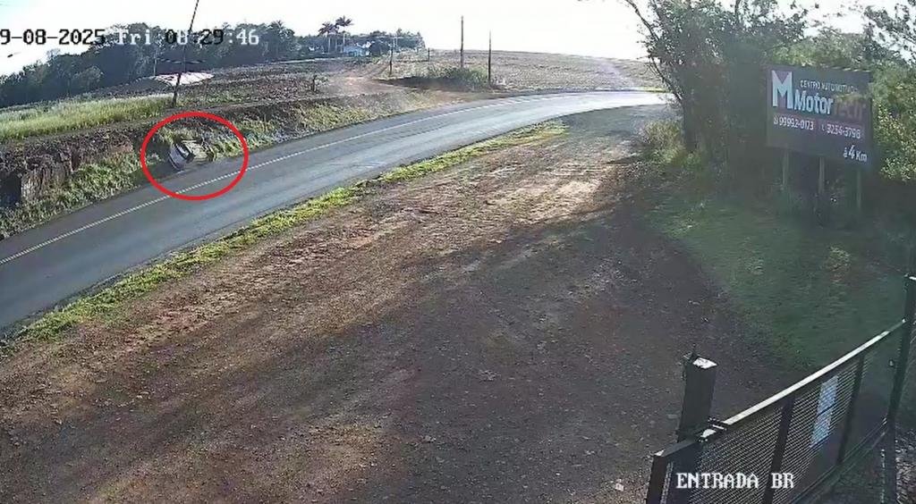 O acidente aconteceu entre Marechal e Curvado, próximo ao Batalhão de Polícia de Fronteira (BPFron) e foi registrado por uma câmera de segurança.