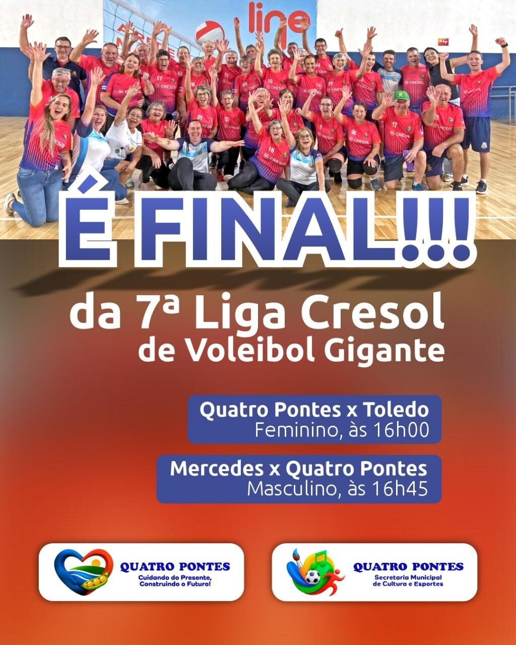 A equipe de Voleibol Gigante de Quatro Pontes entra em quadra na tarde desta sexta-feira (03) para disputar as duas finais da 7ª Liga Cresol de Voleibol Gigante, em Mercedes.